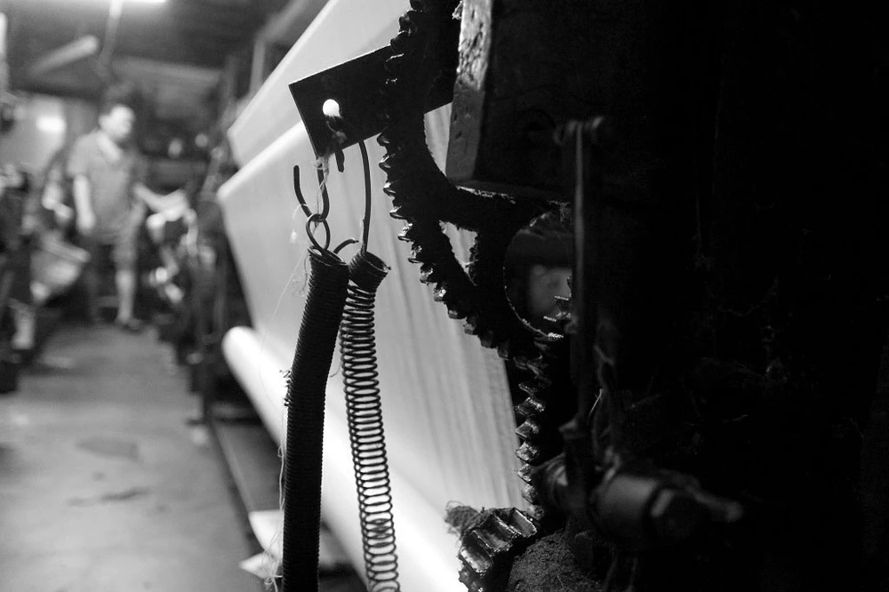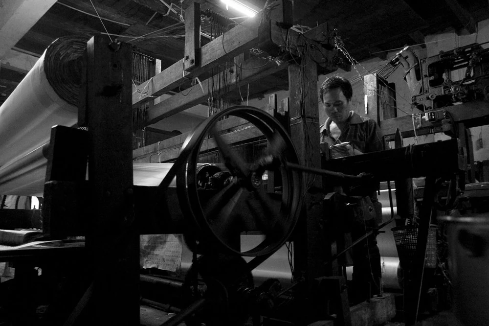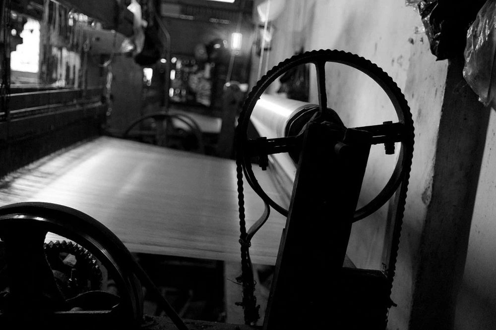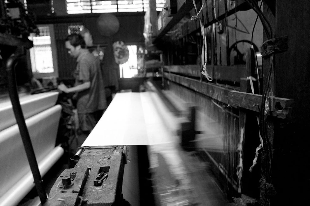 Một máy dệt bỏ không vì hư hỏng chưa được sửa chữa.