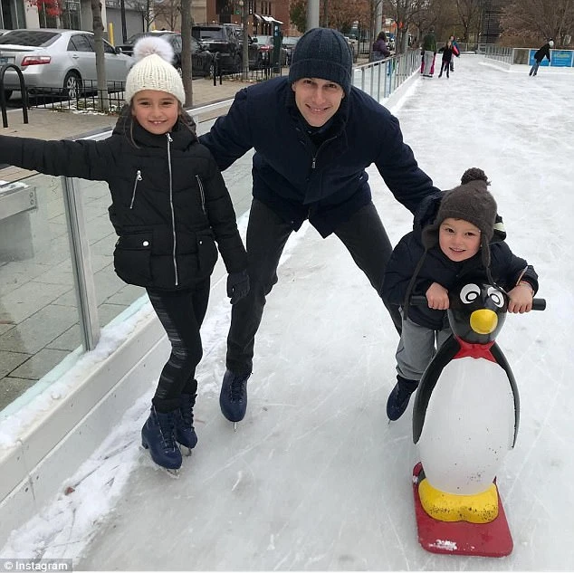 Ông xã của Ivanka chụp chung với 2 con trong buổi trượt tuyết sáng 10-12. Ảnh: Twitter