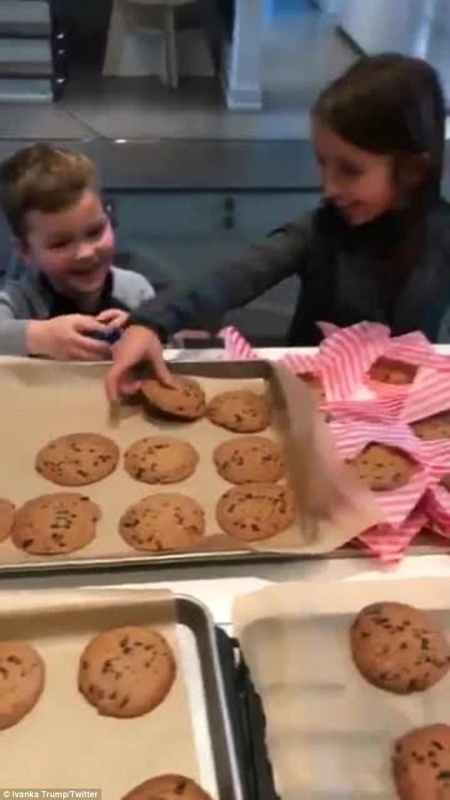Hai nhóc nhà Ivanka đang chuẩn bị bánh Giáng sinh. Ảnh: Twitter