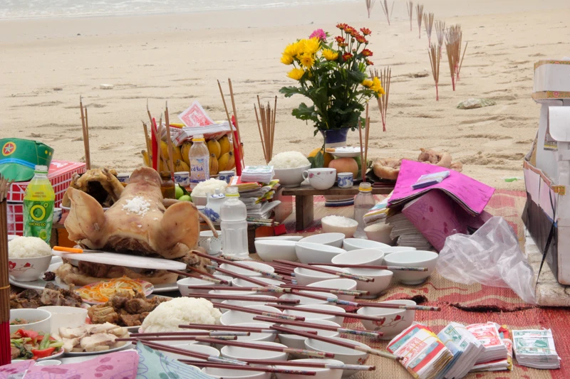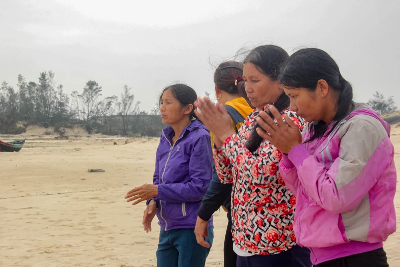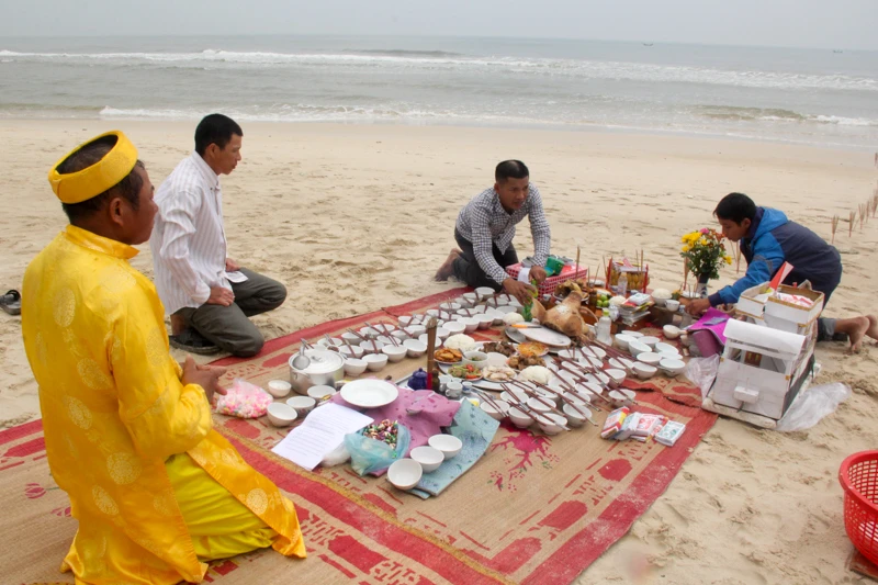 Ngày 14-3, anh Trương Văn Hoành (46 tuổi) cùng vợ là chị Mai Thị Lạnh (40 tuổi, ở thôn Cừa Thôn, xã Hải Ninh, huyện Quảng Ninh, Quảng Bình) dọn mâm cỗ ra bãi biển gần nhà làm lễ giỗ 30 năm ngày mất cho anh trai là Trương Văn Hướng và 63 liệt sĩ Gạc Ma.