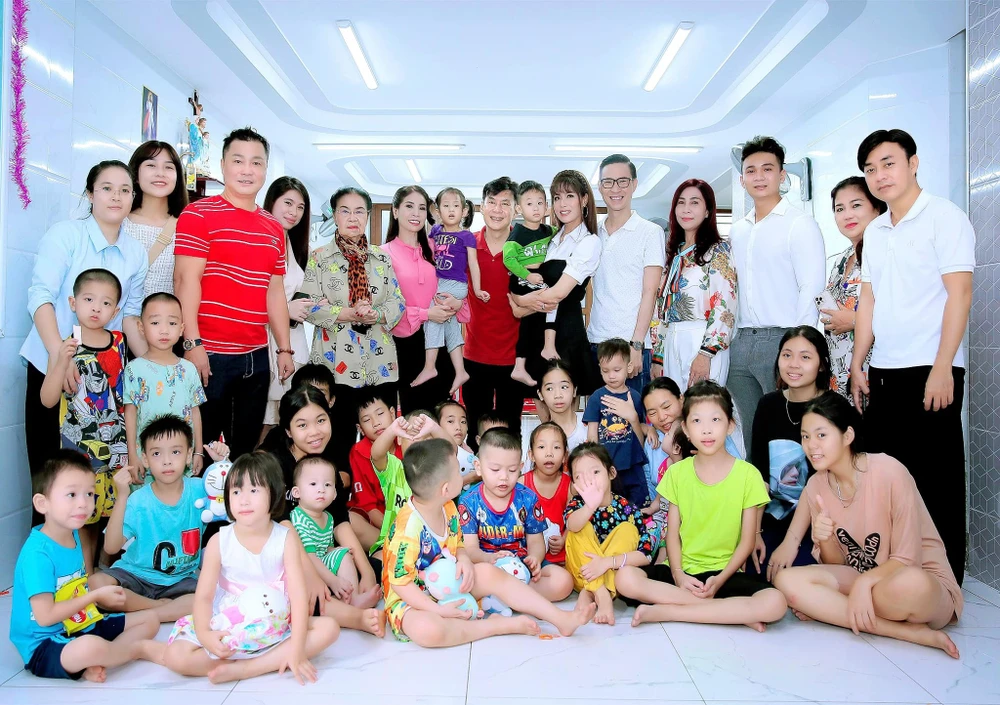 Tại mái ấm "Tình mẹ" ở quận Gò Vấp, gia đình Lý Hùng, Lý Hương đã cùng những người bạn thân thiết tặng 50 phần quà cho những mảnh đời bất hạnh tại đây.