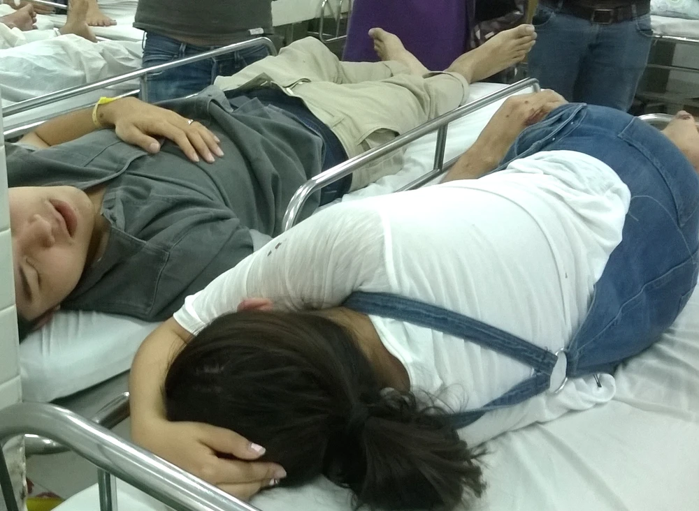 Hai vợ chồng anh Tú và chị Thanh đang cấp cứu tại Khoa cấp cứu, BV Chợ Rẫy, TP.HCM chiều ngày 7-5. Ảnh: H.Vi