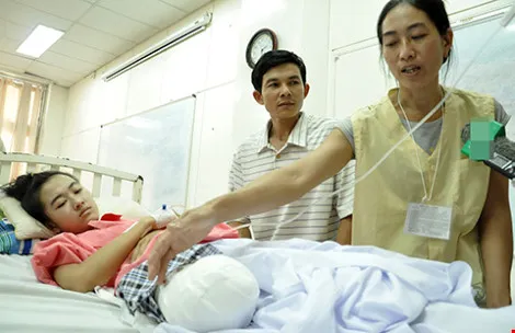 Sau khi nhập viện, các bác sĩ chẩn đoán Vi bị gãy mâm chày bên phải rồi bó bột. Đến tối cùng ngày, Vi kêu bó bột chật quá, kêu gào đau đớn và bị tê chân, phần dưới không còn cảm giác. Do vậy gia đình đã đề nghị bác sĩ tháo bột ra và cho chuyển viện nhưng đến sáng 8-3, các bác sĩ mới đồng ý.
