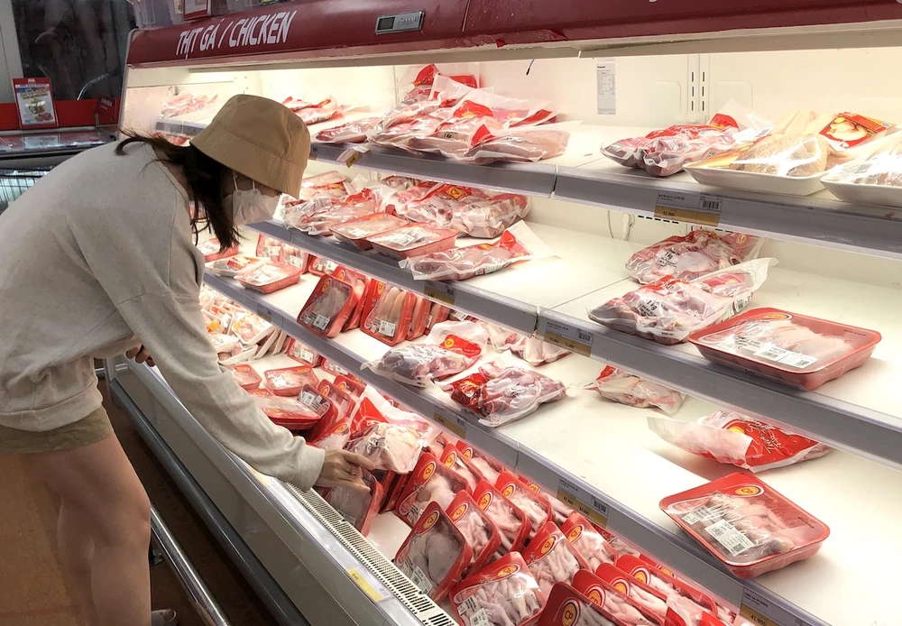Thịt gà công nghiệp bán tại các siêu thị, chợ, cửa hàng tại TP.HCM vẫn giữ giá cao suốt mùa dịch. Ảnh: QH