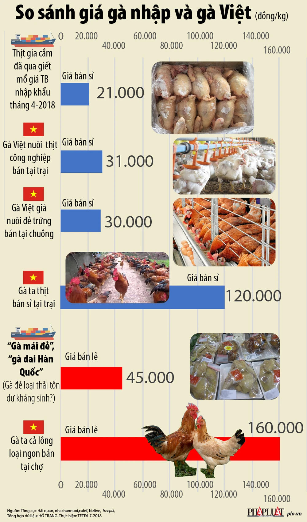 Giá gà không đầu, không chân nhập khẩu khác gà Việt ra sao?