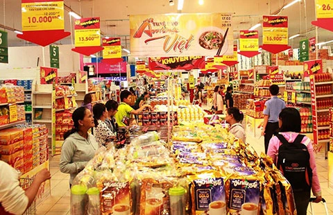 Hàng hóa tại một số siêu thị đã tăng giá. Ảnh: TÚ UYÊN