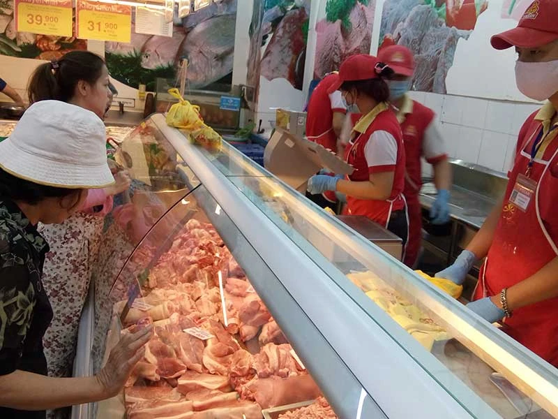 Giá thịt heo mảnh tại các chợ và siêu thị đang tăng trở lại. Ảnh: Q.HUY