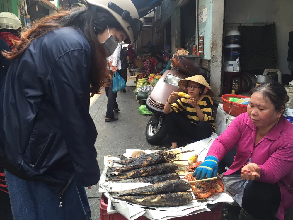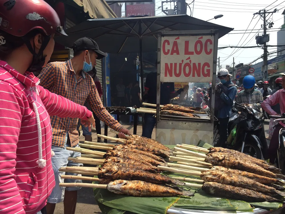 Trong khi đó tại chợ Bà Hoa (Q. Tân Bình), cá lóc nướng sẵn giá 50.000-60.000 đồng/tùy kích cỡ. Riêng tôm nướng sẵn giá 20.000 đồng/con trong buổi sáng đến cuối buổi sáng giảm còn 15.000 đồng/con.