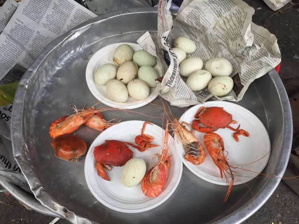 "mâm cỗ" làm sẵn gồm trứng, tôm, cua