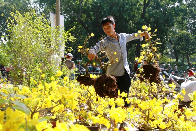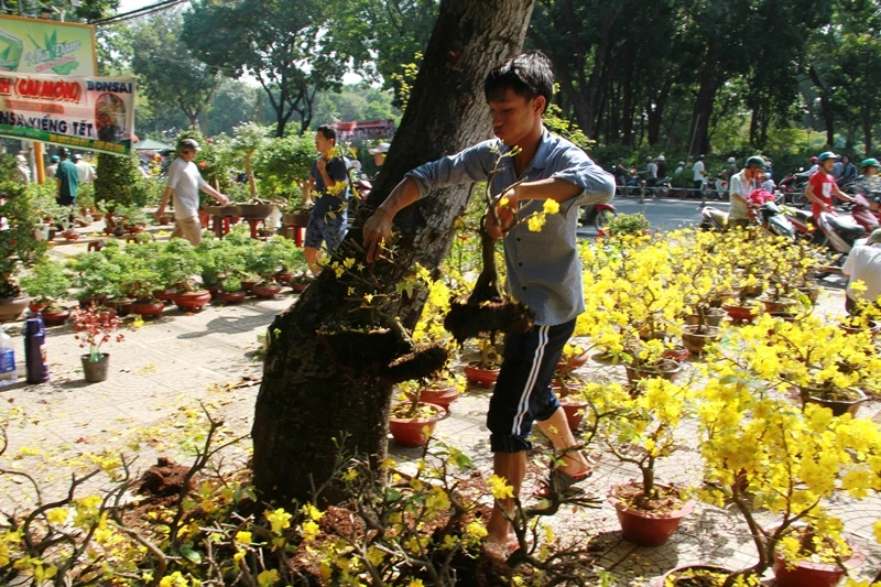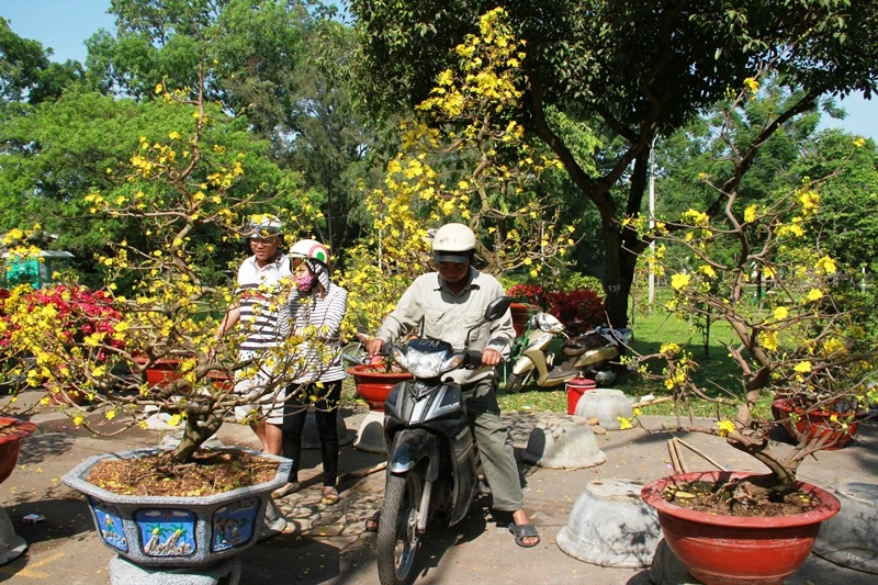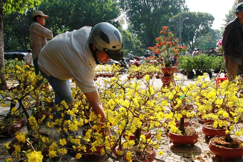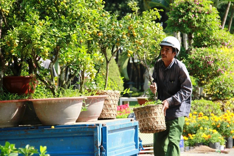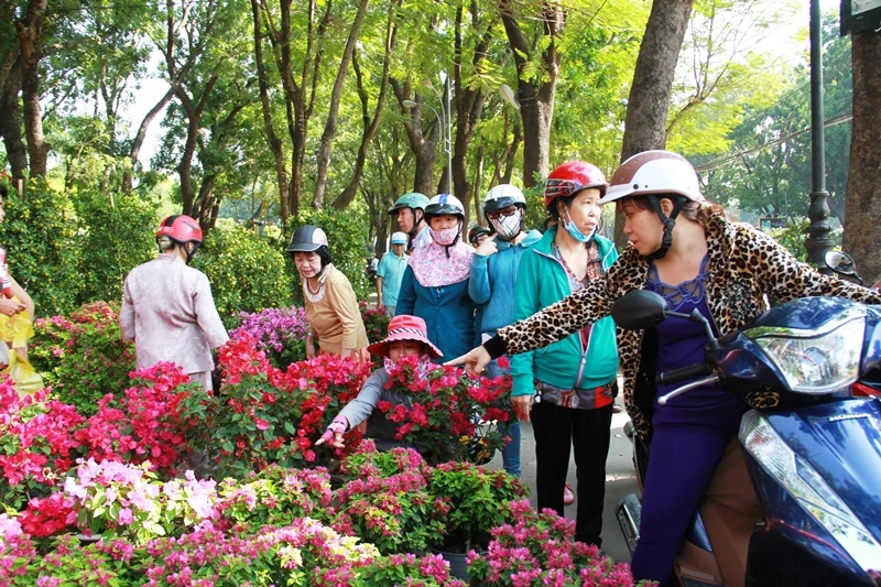Cho đến gần 11 giờ trưa cùng ngày, nhiều nhà vườn đã tranh thủ thuê xe để tập kết hoa, cây cảnh chuẩn bị chở về quê chỉ để lại một số ít phục vụ những khách hàng cuối cùng. Chị Hà một người bán hoa vạn thọ trong công viên cho biết: Mình giảm giá, bà con biết nên ủng hộ nhiều lắm, phía trong công viên sắp đóng cửa thì sắp xếp đưa ra ngoài đường hoặc nơi khác để bán, gắng bán hết bởi đây là công sức lao động của mình mà”.
