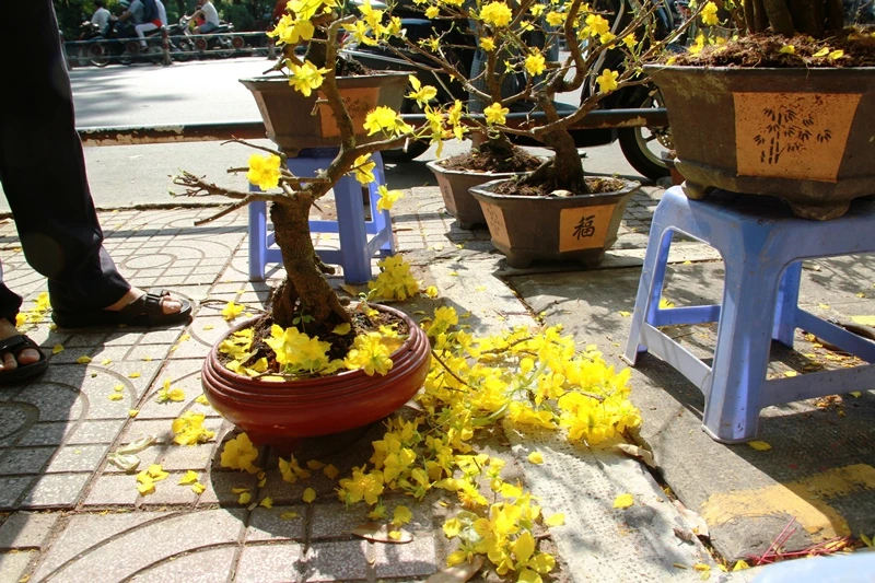 Giá các loại hoa thân mềm như mào gà, vạn thọ, cúc… cũng đồng loạt giảm giá chỉ còn khoảng 50 ngàn đồng/cặp. Theo các chủ hàng, những loại như mai, đào, quất… còn có thể về nuôi tiếp vì là cây lâu năm nhưng những loại hoa trồng theo thời vụ thì cần phải bán hết. Giá thấp mấy cũng bán, không thì về mang cho chòm xóm chứ không đập bỏ vì đó là công sức lao động của mình” – anh Toàn, một người bán hoa cho biết.