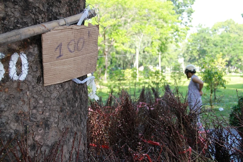 Trong khi đó, giá đào Tết cũng giảm, một cành đào 700 ngàn nay chỉ còn khoảng 50 ngàn đồng, riêng đào có gốc giá ban đầu từ 1 triệu đến 1,5 triệu nhưng nay cũng giảm chỉ còn 400 – 500 tùy gốc. “Nói chung đào gốc dễ bán, riêng đào cành khó bán hơn, nhưng mặt bằng vẫn không lỗ”- chị Thùy, một người bán đào cho biết.