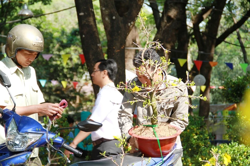Theo đó, một số nhà vườn giảm giá hoa mai từ 50-70% để mong thu hồi vốn, như một cây mai cao khoảng khoảng 1,5 mét (hình - PV), hoa sum suê những ngày đầu giá 3 triệu đồng nay giảm xuống còn 900 ngàn đồng. “Hôm nay tôi mới tranh thủ thu xếp xong việc nhà, ra chợ hoa để mua về chưng. Cũng như mọi năm, những phút cuối lúc nào cũng đông người mua vì giá rẻ” – ông Quỳnh ở quận Tân Bình vui vẻ cho biết.