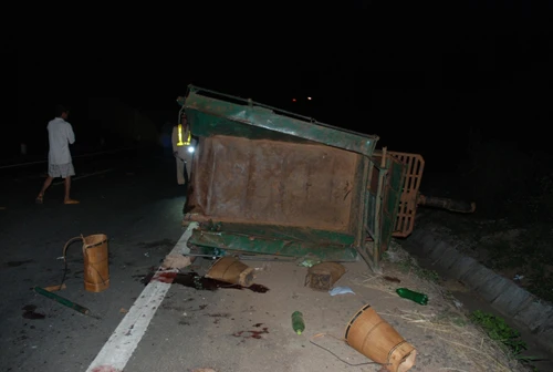 Cú tông mạnh khiến những người ngồi trên xe văng lên không trung rơi ra lòng đường, xuống taluy đường. Sau khi gây tai nạn, tài xế xe tải hoảng loạn lái xe chạy tiếp khoảng 2 km mới dừng lại. Tại hiện trường vết máu, gùi đi rẫy, vật dụng người bị nạn nằm vương vãi, rải rác dọc đường. Chiếc xe công nông bị gãy làm đôi, phần đầu dính chặt vào đầu xe tải.
