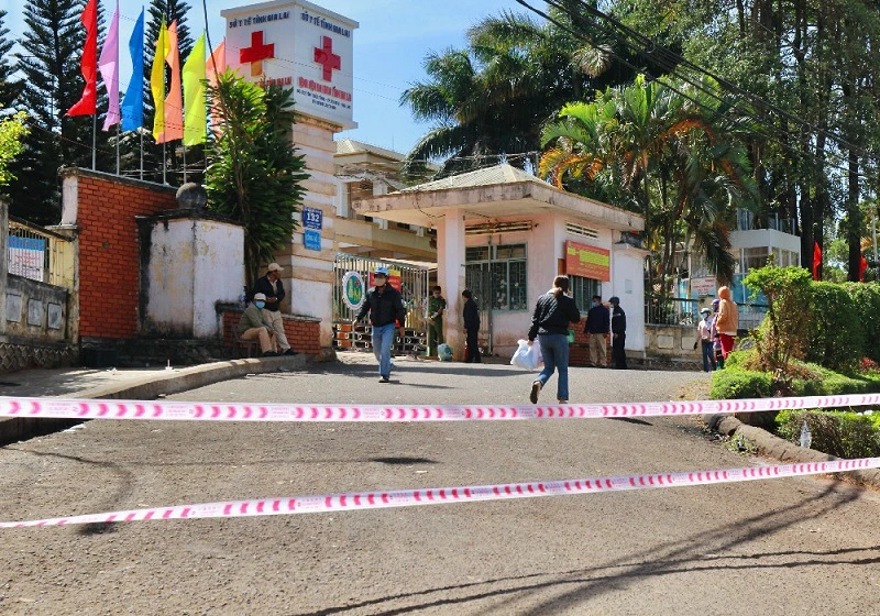 Bệnh viện Đa khoa Gia Lai bị phong tỏa do liên quan đến một ca nghi nhiễm COVID-19. Ảnh MM