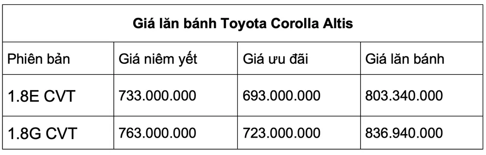 Như vậy, sau giảm giá và ưu đãi, tính ra chi phí mua các phiên bản Toyota Corolla Altis 1.8E CVT và 1.8G CVT chỉ còn từ 693 – 723 triệu đồng, tuỳ màu xe.