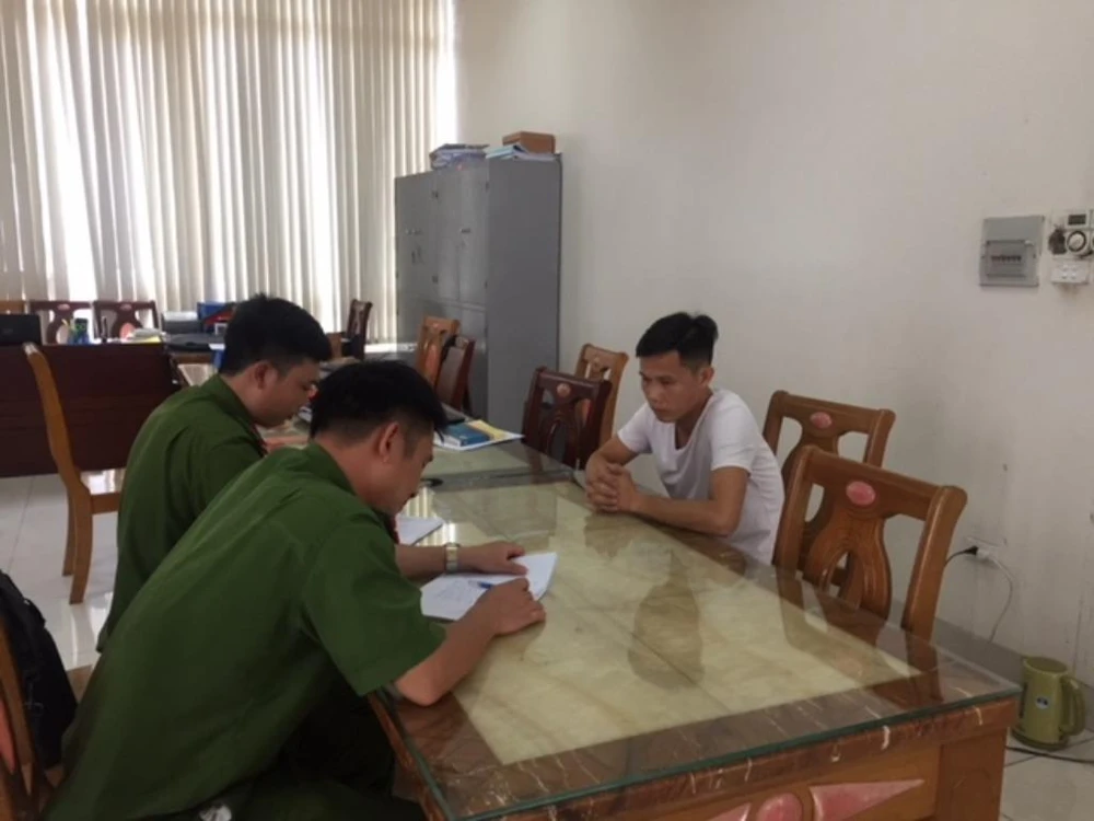 Lê Hữu Định tại cơ quan điều tra. Ảnh: Công an tỉnh Quảng Ninh