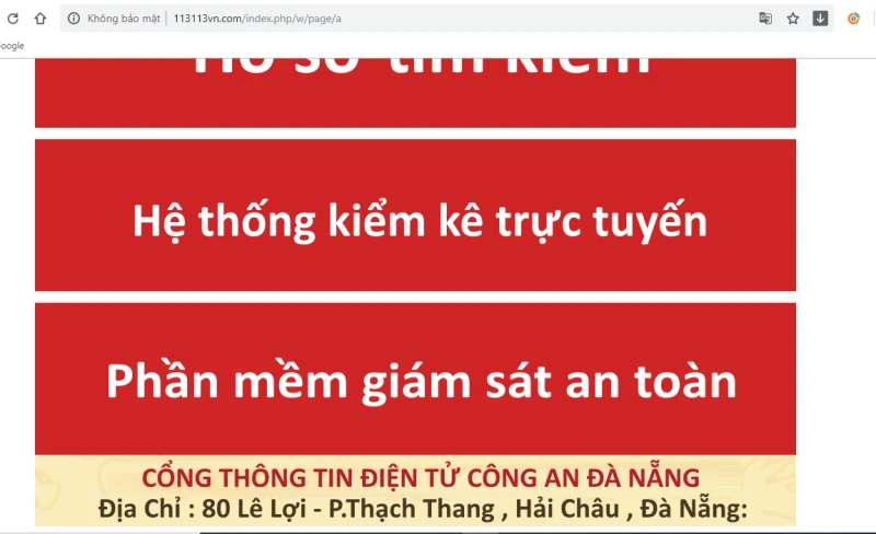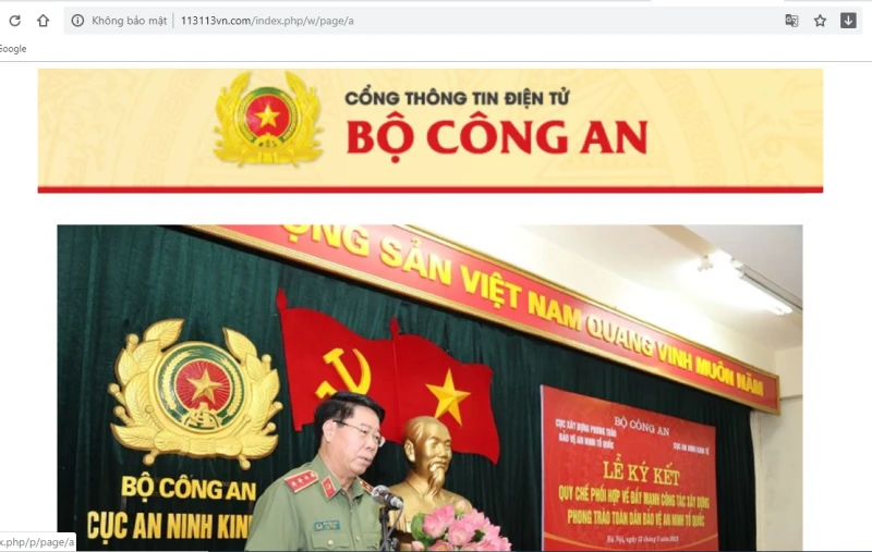 Ngày 23-10, Công an TP Đà Nẵng phát đi thông tin về một website có tên miền http://113113vn.com, IP: 45.76.234.141 có giao diện giống Cổng thông tin điện tử Bộ Công an.