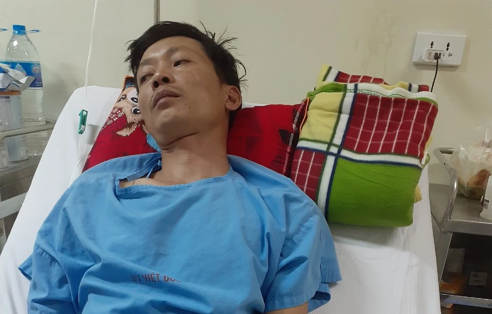 Tài xế Hoàng Anh Đức bị chấn thương sọ não và nứt xương tủy cổ đang cấp cứu, điều trị ở BV Việt Đức (Hà Nội). Ảnh: SL.