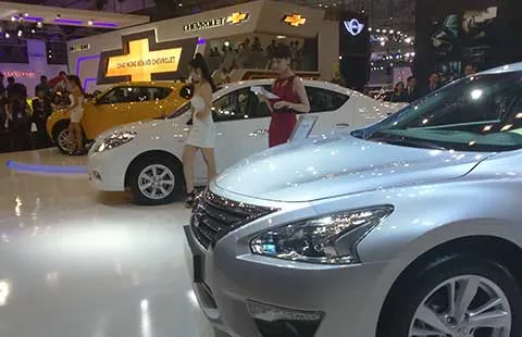 Các hãng xe giới thiệu sản phẩm tại triển lãm quốc tế ô tô diễn ra cuối năm 2014 tại TP.HCM. Ảnh: QH