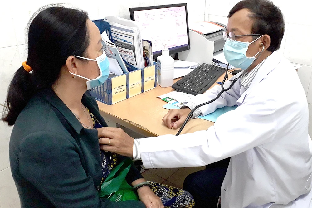 Bác sĩ đang khám hậu COVID-19 cho một bệnh nhân đã từng nhiễm virus SARS-CoV-2. Ảnh: TRẦN NGỌC