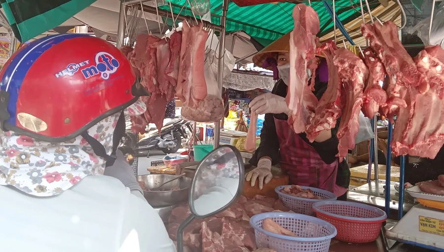 Tiêu thụ heo trên thị trường giảm. ẢNH: TÚ UYÊN