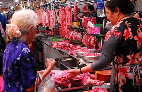 Hiện thịt nạc 100.000 đồng/kg, sườn non 130.000-140.000 đồng/kg, thịt đùi 90.000-100.000 đồng/kg, ba rọi 100.000 đồng/kg. Một số tiểu thương cho biết gần đây thông tin về thịt heo có chất cấm, chất tăng trọng…, các trại heo bị quản lý chặt nên lượng heo xuất chuồng ít, nguồn cung giảm dẫn đến giá cao.