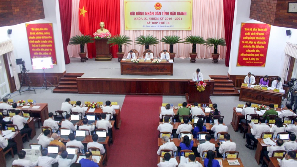 Quang cảnh kỳ họp thứ 14, HĐND tỉnh Hậu Giang khóa IX (nhiệm kỳ 2016-2021).