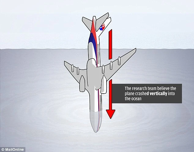 Nhóm nghiên cứu thuộc đại học Texas A&M ở Qatar tin rằng máy bay MH370 đã lao xuống biển Ấn Độ Dương theo phương thẳng đứng (Nguồn: Daily Mail)