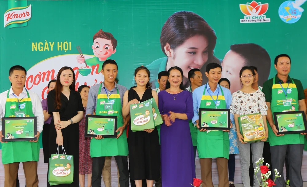 Các gia đình ở tỉnh Quảng Trị tham gia ngày hội "Cơm ngon - Con khỏe". Ảnh: GIA LINH