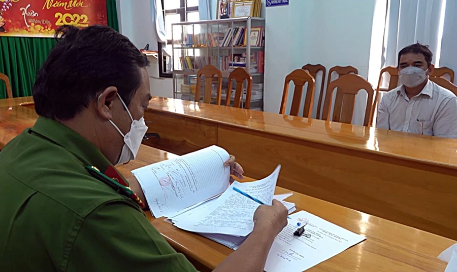 "Trung tướng" Hội tại cơ quan điều tra. Ảnh: VĂN HOÀN