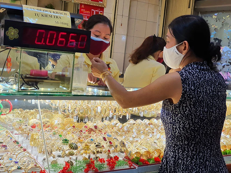Khi thị trường vàng thế giới diễn biến phức tạp, giá vàng Việt Nam cũng biến động theo. Đến hôm qua, giá vàng SJC tại thị trường trong nước xoay quanh mốc 56 triệu đồng/lượng, cao hơn vàng thế giới khoảng 3,8 triệu đồng/lượng.