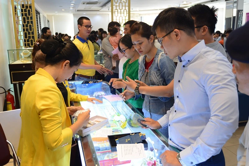 Mức vênh giữa giá mua vào bán ra của vàng thần tài được đẩy lên rất cao khoảng 700.000 – 800.000 đồng/lượng.