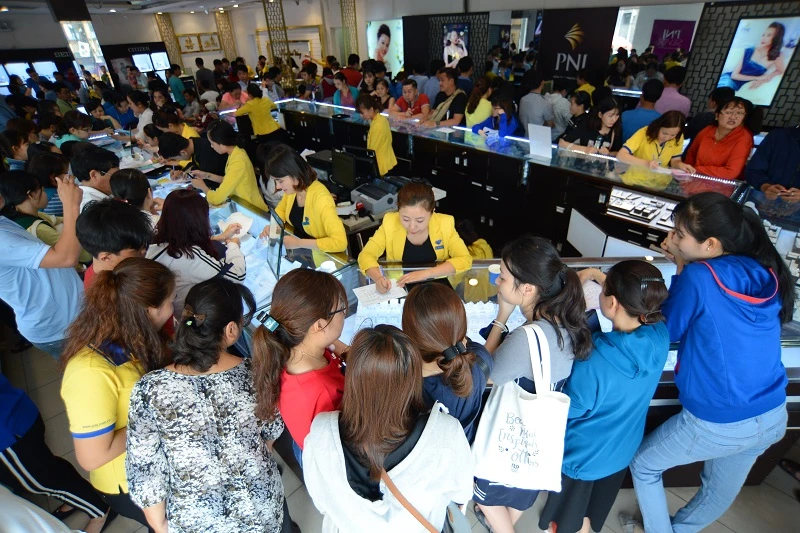Theo ghi nhận trong ngày Thần tài, tình hình mua bán vàng ở TP.HCM không còn cảnh chen lấn như trước đây nữa, do nhiều khách hàng đã chọn lựa mua trước đó