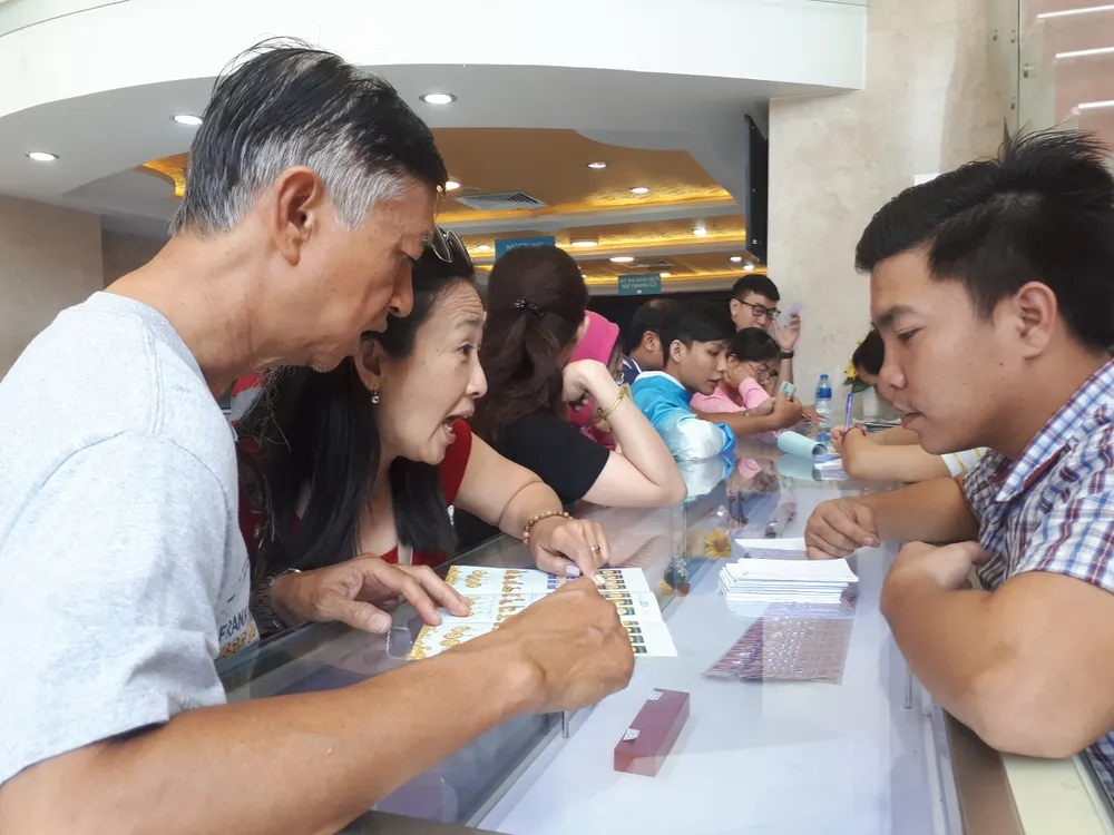 Chị Ngọc Lan, một khách hàng, cho biết thêm: "Tôi mua giùm cho cả gia đình nên số lượng lên đến gần 2 lượng loại miếng vàng Thần tài". Ngoài tiền vàng tính theo giá tại thời điểm mua, khách hàng sẽ phải chịu thêm tiền công là 100.000 đồng/miếng vàng Thần tài.