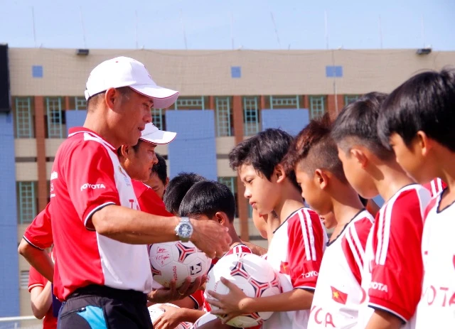 Cựu tuyển thủ Công Tuyền và Hồng Sơn đang hướng dẫn các em