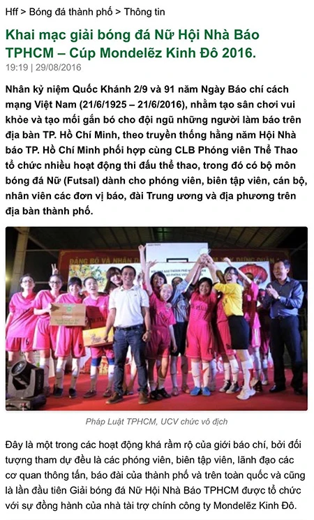 Sân chơi bóng đá nữ Futsal dành cho phóng viên, biên tập viên, cán bộ, nhân viên các đơn vị báo, đài trung ương và địa phương trên địa bàn TP.HCM. Các nữ cầu thủ của các đội Pháp Luật TP.HCM, HTV, SCTV, báo Sài Gòn Giải Phóng, báo Người Lao Động và báo Khăn Quàng Đỏ đều rất háo hức với sân chơi này. Với tiêu chí vui - khỏe - đẹp, những bóng hồng trên sân cỏ gặp gỡ nhau trong tiếng cười rộn ràng.