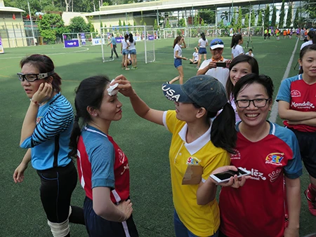 Màn khởi động... nhí nhảnh của các cầu thủ báo Pháp luật TP. HCM
