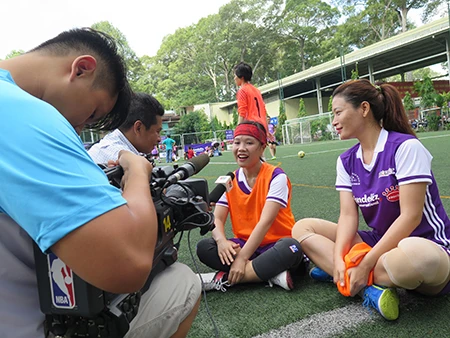 Nhà đài VTV tranh thủ phỏng vấn hai nữ cầu thủ Bích Ngọc - Hà Vân từng đoạt giải Miss cũng do Hội Nhà báo TP.HCM tổ chức.