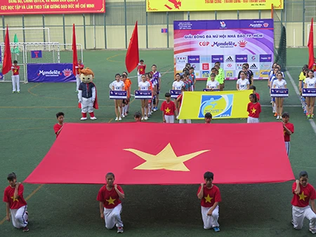 Khai mạc giải rất trang trọng và đúng nghi thức của một trận… World Cup với màn chào và rước cờ fair play.