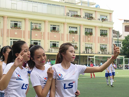 Các cô gái điệu đà tạo dáng selfie lưu giữ khoảnh khắc đẹp trước giờ xung trận.