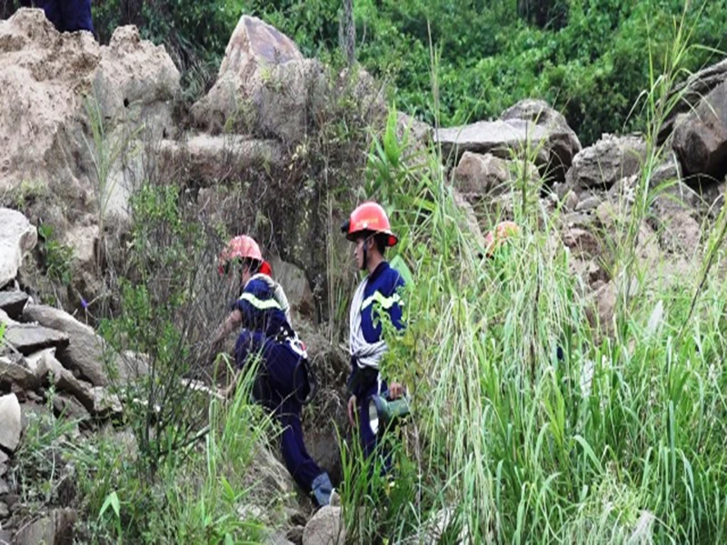 Lực lượng cứu hộ vượt rừng núi để tìm kiếm người gặp nạn. Ảnh: CSPCCC