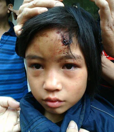 Cháu P. khi được giải cứu có nhiều vết thương mới và cũ trên vùng đầu. Ảnh: PH