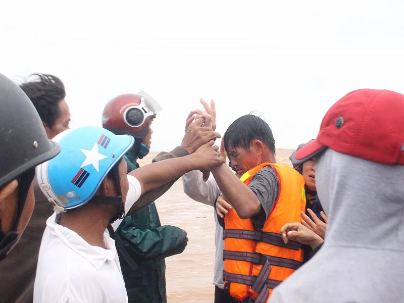 Vào lúc 9h30 sáng nay 10-10, để cứu các thuyền viên mắc kẹt, chiếc tàu chở bốn ngư dân địa phương đang trên đường tiếp cận tàu VietShip thì bị sóng đánh chìm. Ba người bơi lên tàu Vietship an toàn, người còn lại bị sóng đánh dạt vào bờ biển, đã được lực lượng chức năng ứng cứu kịp thời.