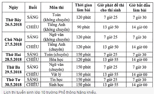 Sau môn thi toán, tùy thuộc vào việc đăng ký trước đó, thí sinh sẽ lần lượt dự thi các môn tiếng Anh, ngữ văn (bắt buộc) và các môn chuyên tiếng Anh, toán, hóa học, ngữ văn, vật lý, tin học, sinh học.