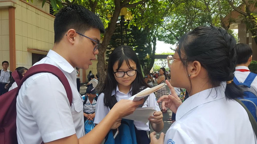 Thí sinh trao đổi sau giờ thi.