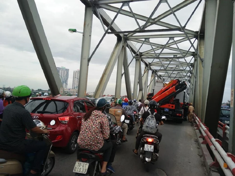 Trước đó, khoảng 15 giờ 50, tại nhịp cầu N7, một phụ nữ đã trèo qua lan can cầu dọa tử tự. Phát hiện sự việc, cả người thân và lực lượng chức năng đã khuyên nhủ người này trong nhiều tiếng đồng hồ nhưng không thành. Sự việc khiến giao thông qua khu vực bị tắc nghẽn.