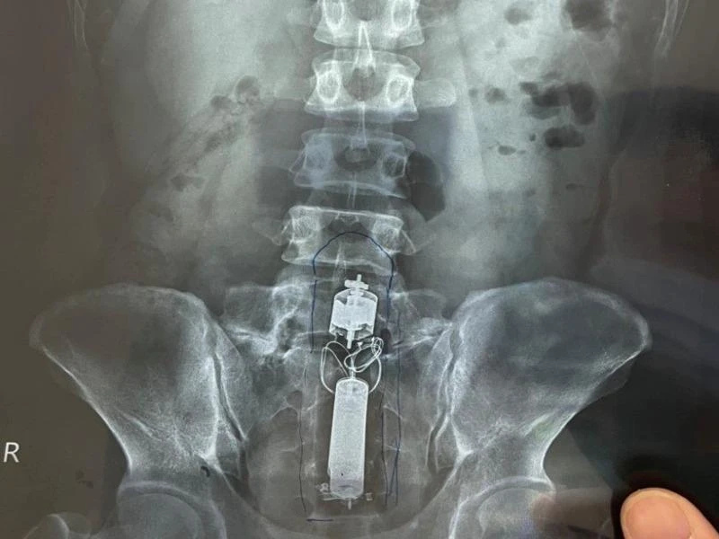 Phim chụp hình ảnh dụng cụ tình dục trong trực tràng. Ảnh: BVCC