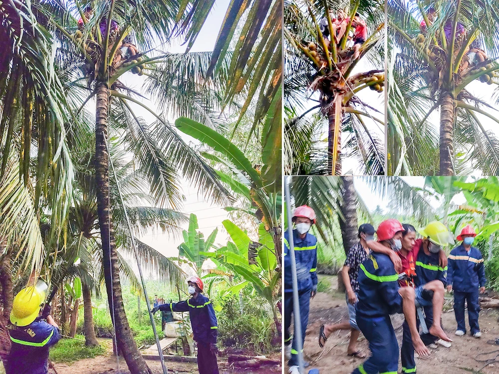 Ngày 28-1, Công an tỉnh Vĩnh Long cho biết vừa giải cứu thành công người đàn ông bị động kinh kẹt trên đọt dừa.