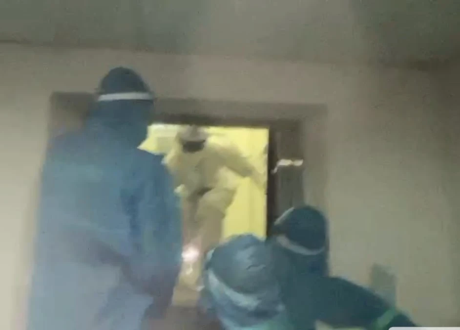 Bên trong anh LQN, là nhân viên y tế đang làm việc tại đây được hướng dẫn bước ra ngoài an toàn.